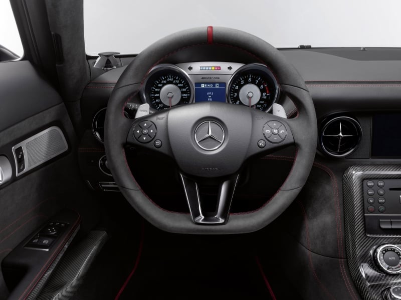The SLS AMG Black Series achieves a whole new level of performance with its AMG Adaptive Performance Coil-over Suspension, AMG high- performance ceramic two-piece brake system and weight-optimized, forged AMG light-alloy wheels with new sport tires. Additional highlights include electronically-controlled AMG rear-axle differential lock and the AMG SPEEDSHIFT DCT 7-speed sports transmission featuring spectacular shift and response times. The available AMG Aerodynamics package delivers a further boost to the vehicle’s handling and dynamics. The 2014 SLS AMG Black Series went on sale in the U.S. in summer 2013.