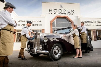 Outside the Hooper’s building, a handsome 1953 Rolls-Royce Silver Wraith Dedanca de Ville with ‘Empress’ style coachwork was displayed. The car was originally specified with an electric division, electric windows and air conditioning, all of which are still fully functioning. The original owner was known to prefer his chauffeur to drive in a brisk style, and the rear division features a speedometer to allow the gentleman to monitor progress from the rear compartment.