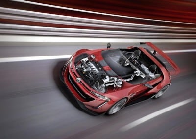 The GTI Roadster is a Golf GTI show car that was originally created as a purely electronic CGI entity for the Sony PlayStation®3 race game Gran Turismo 6 (“GT6”). The two-seat convertible is powered by a 3.0-litre V6 twin-turbocharged TSI® engine that produces 503 horsepower and a mighty 413 pound-feet of torque between 4,000 and 6,000 rpm; from just 2,000 revs, 369 lb-ft of that torque is available. The power of the TSI engine is transferred to the 20-inch wheel-and-tire combination via a seven-speed DSG® dual-clutch automatic transmission and a 4MOTION® all-wheel-drive system. The lightweight, 3,133- pound sports car sprints from 0 to 60 mph in an estimated 3.5 seconds and goes onto a top track speed of 192 mph.