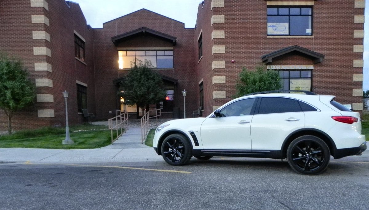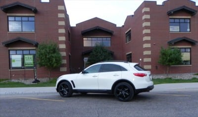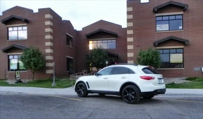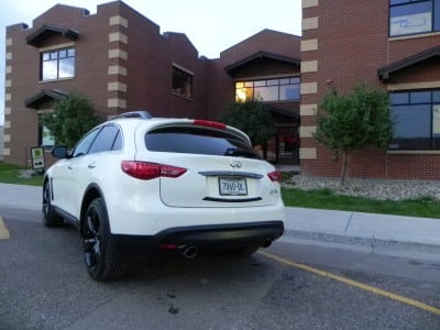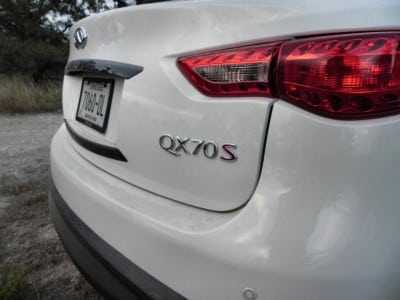 The QX70 was a manufacturer’s press loan for about a week. During that time, we put 382 miles on the vehicle with various passenger loads and under various driving conditions, including freeway, in town, and off pavement.