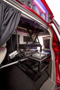 The Sienna:Remix features a fully functional DJ booth inside the vehicle and a 360-degree A/V column that can rise out of the roof with two 40-inch LCD monitors, four subwoofers,16 speakers and two LED bars. Parents can plug into the audio system to take advantage of five amplifiers and two 32-band equalizers for sound that should earn high fives around the cul-de-sac.