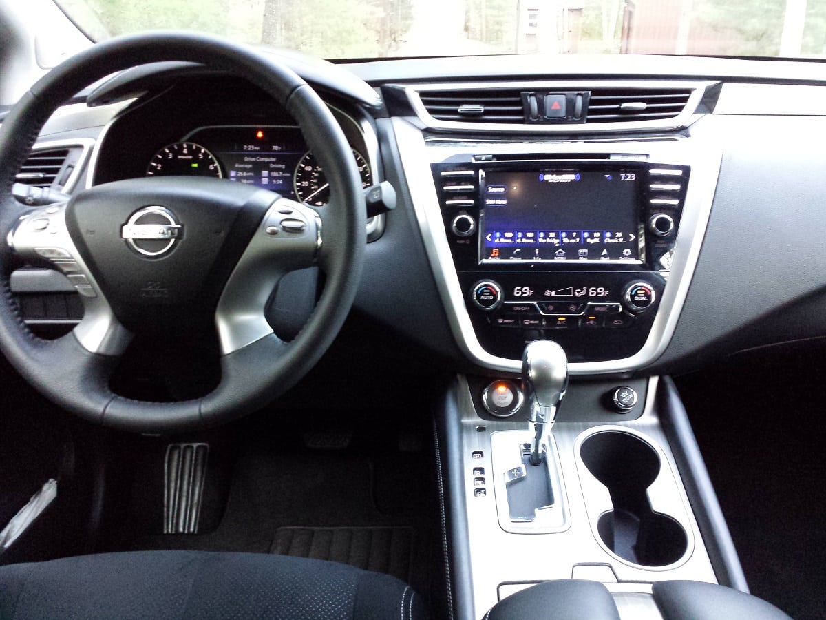 The “Zero Gravity” seats were perfectly comfortable. My $37K tester had cloth seats with no heat. I would seek out leather with heated and ventilated seats if I were shopping for this SUV. All the proper power seat controls were there for that very reasonable price though. In back, the seats are also comfortable and spacious. Nissan’s product manager told me the Murano was designed with grown-up couples going to dinner in mind. The vehicle is more than large enough for four to drive to dinner comfortably. Heck, four could go on a weekend trip together and still be friends when they arrived.