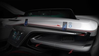 Designed from the inside out, the interior of the Chrysler Portal concept offers the driver and passengers a “third space” – an open and serene atmosphere that provides an alternative environment between work and home.