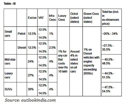 The cars over four-metre length with a petrol or diesel engine over 1500cc fall in the luxury car segment.