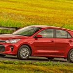 Underneath this is a new platform: “The Rio’s all-new platform is not only dimensionally larger than the previous generation model, but is now underpinned by completely new suspension geometry. Weighing in at just 2,648 lbs. (manual transmission) and 2,714 lbs. (automatic transmission), engineers sought to refine the driving experience with more agile handling and improved ride comfort, and this was achieved by designing a fully-independent MacPherson strut front suspension and a torsion beam rear axle. The new Rio sedan and Rio 5-door also benefit from a revised spring and damper setup that helps make the car more compliant and comfortable. Stopping power comes from 11-inch disc brakes up front and drum brakes in the rear, while the EX model is outfitted with 11-inch disc brakes up front and 10.3-inch rear disc brakes. And, for the first time, Rio is offered with available Autonomous Emergency Braking (AEB). In total, all these enhancements deliver crisp and nimble handling and improve overall driver confidence.”