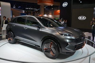 The Niro EV Concept is powered by a next-generation electric vehicle powertrain, using new production technologies earmarked for near-future EVs from Kia. Energy is provided by a high-capacity 64 kWh lithium-polymer battery pack, paired with a powerful 150 kW electric motor. The Niro EV Concept suggests a driving range of 238 miles (383 kilometers), with zero tailpipe emissions.