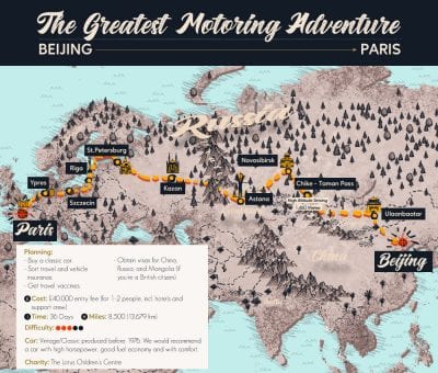 The Peking to Paris challenge truly is unique – not only will you have to compete in a vintage or classic car, but you’ll be travelling for over 13,000 km, against the clock.