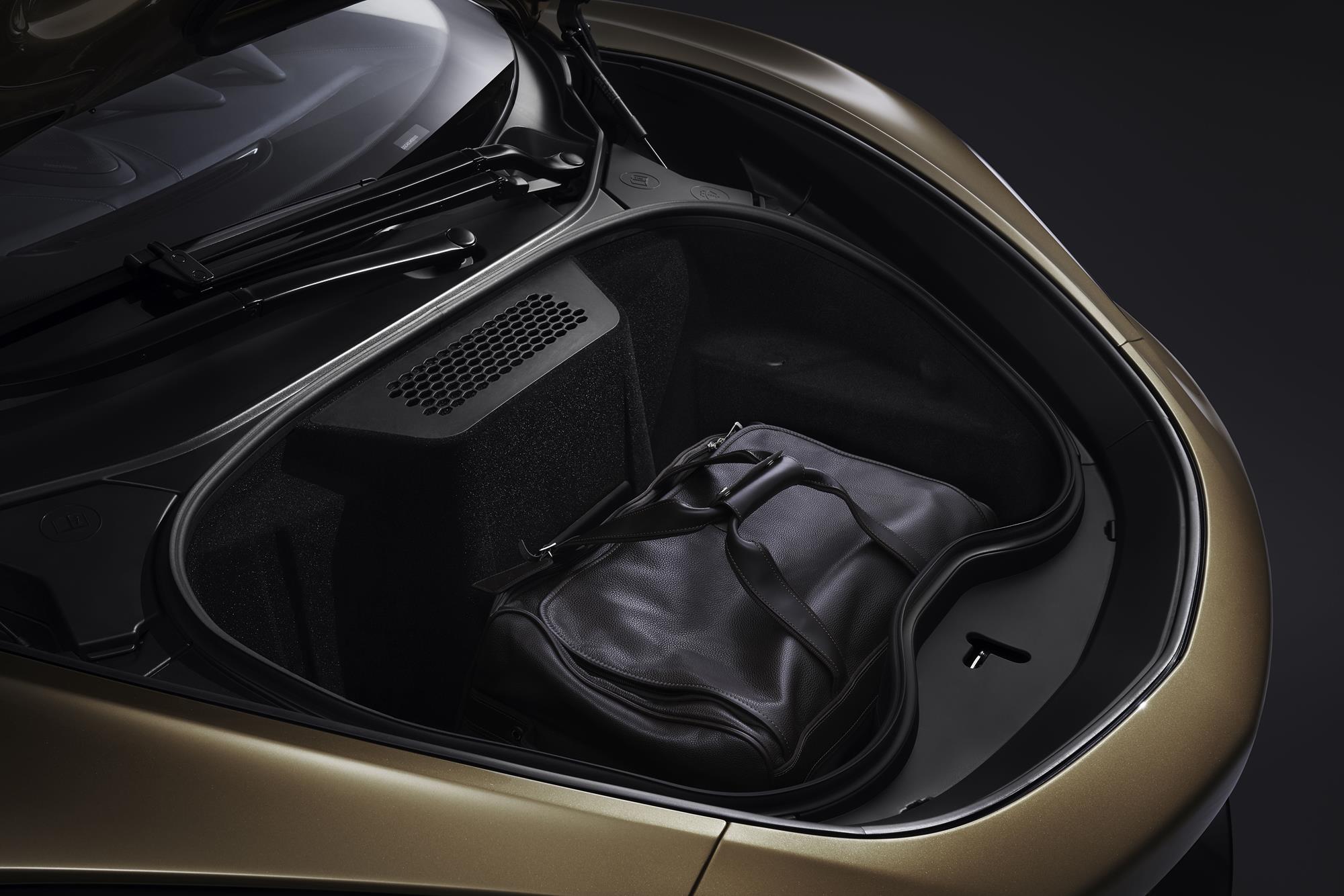 The low height of the engine and positioning of the exhaust system has allowed the volume, shape and usability of the luggage bay to be optimised. A golf bag or two pairs of 185cm skis and boots as well as luggage can be carried with ease, while a further 150 litres of storage at the front means the new McLaren GT can accommodate a total of 570 litres.