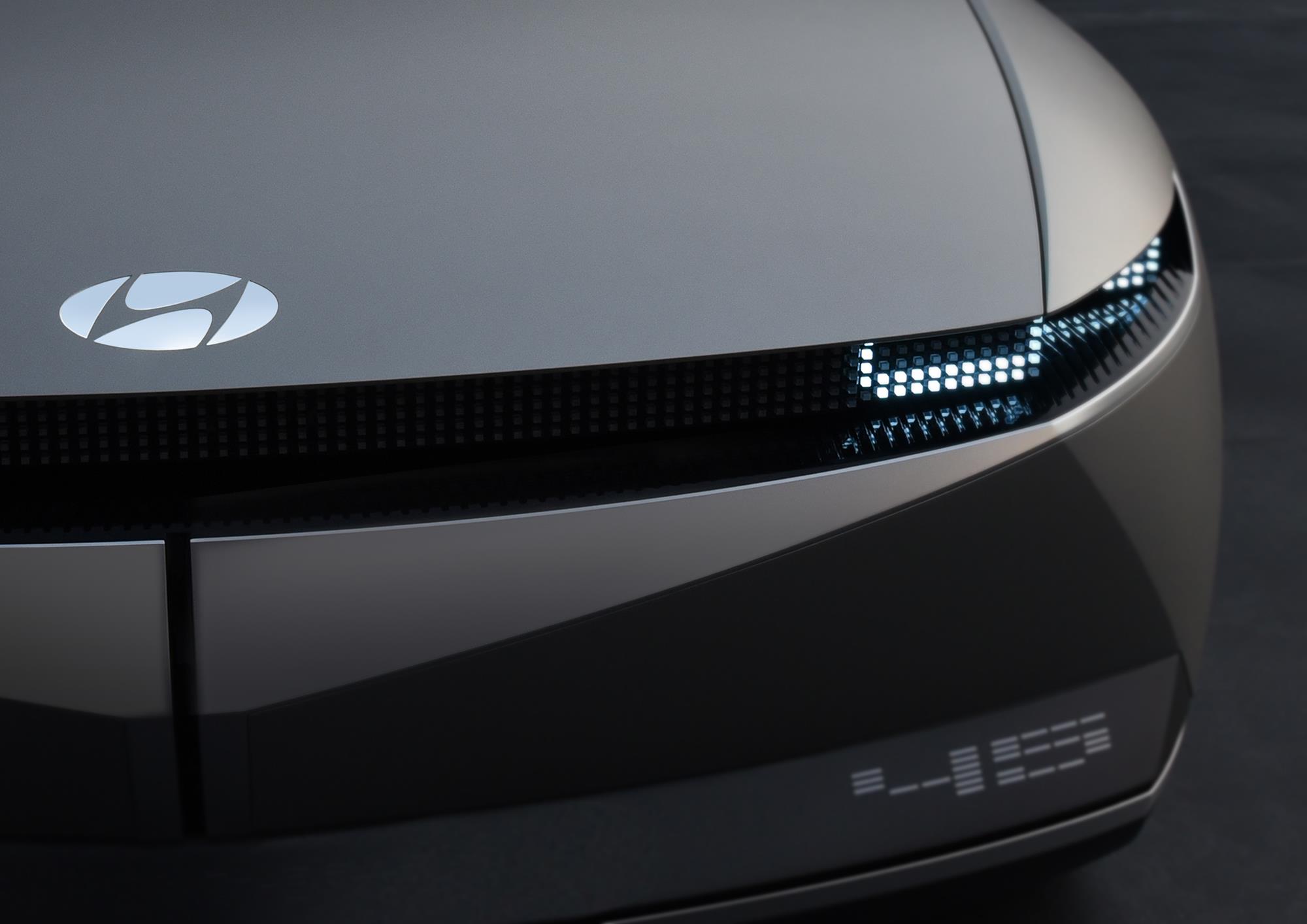 45 reinterprets the concept’s distinctive lattice radiator grille with a ‘kinetic cube lamp’ design. The iconic front-end presence with the kinetic cube lamps evokes analogue emotions, while at the same time applying cutting-edge technologies. It also takes Hyundai’s lighting architecture to the next level, allowing people to instantly recognize the vehicle at a distance.