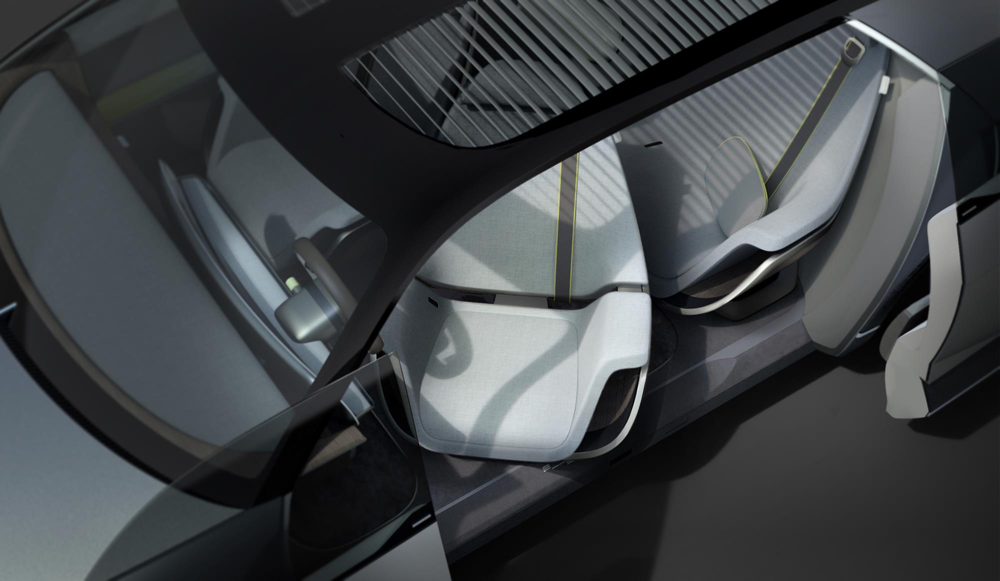 For occupants, the car delivers a comfortable and communal environment, with lounge chair-style rear seats and front seats that can rotate to face other passengers. Pushing design and technology further ahead, front-seat passengers can interact with the infotainment system via a projection-beam interface. This replaces a single central touchscreen with a series of displays and functions integrated into the dashboard itself.