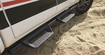Ranger Tremor comes with two new recovery hooks in the rear, in addition to the two up front. It takes a wider profile thanks to the Tremor-specific General Grabber all-terrain tires, wheels and wider wheel lip moldings. New hoop steps give Ranger Tremor additional off-road styling and functionality without sacrificing ground clearance.