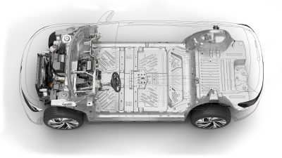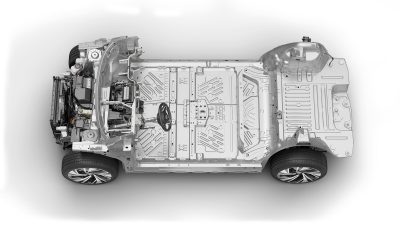 The heart of the ID.4 is a battery pack comprised of 288 pouch cells in 12 modules, positioned in the underbody to create a low center of gravity for optimal driving dynamics as well as extremely well-balanced weight distribution. It is housed in a lightweight aluminum structure that is bolted to the frame, helping to improve rigidity.