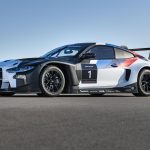 Viewed from the side, the racing car implements the same design elements as the production car to define the bodyside.