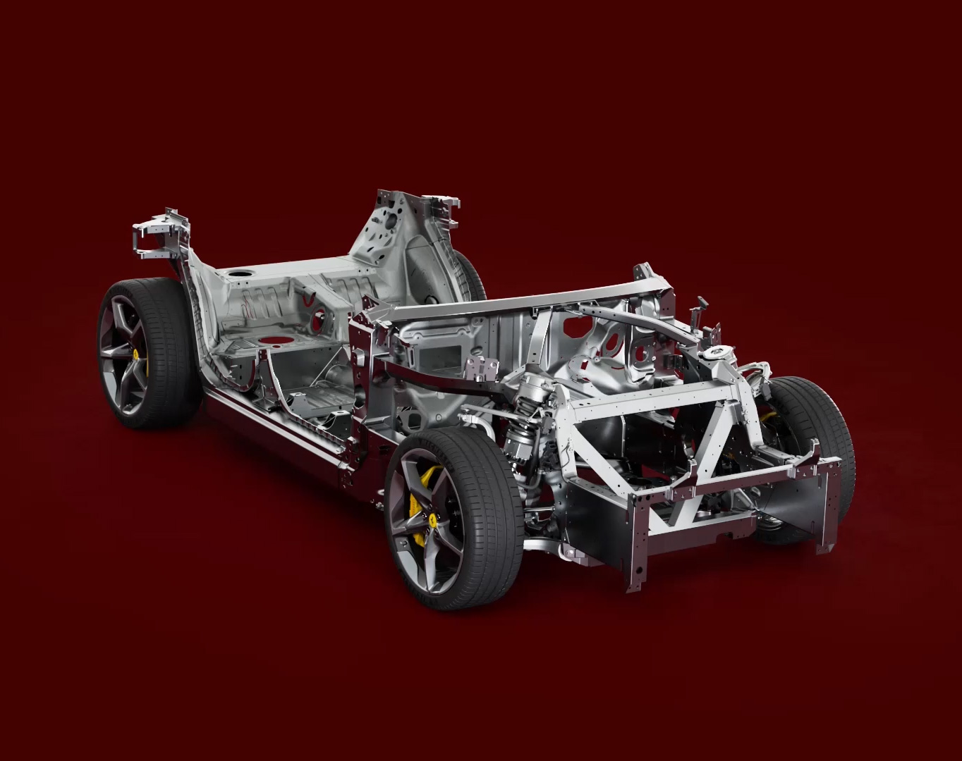 The Purosangue (Italian for “purebread”) features a V12 engine specially adapted to the car and an interesting drivetrain layout. The gearbox is just ahead of the rear axle while the power transfer unit (PTU) for the front axle is mounted ahead of the engine. This balances the vehicle’s weight for a 49:51 front:rear distribution.