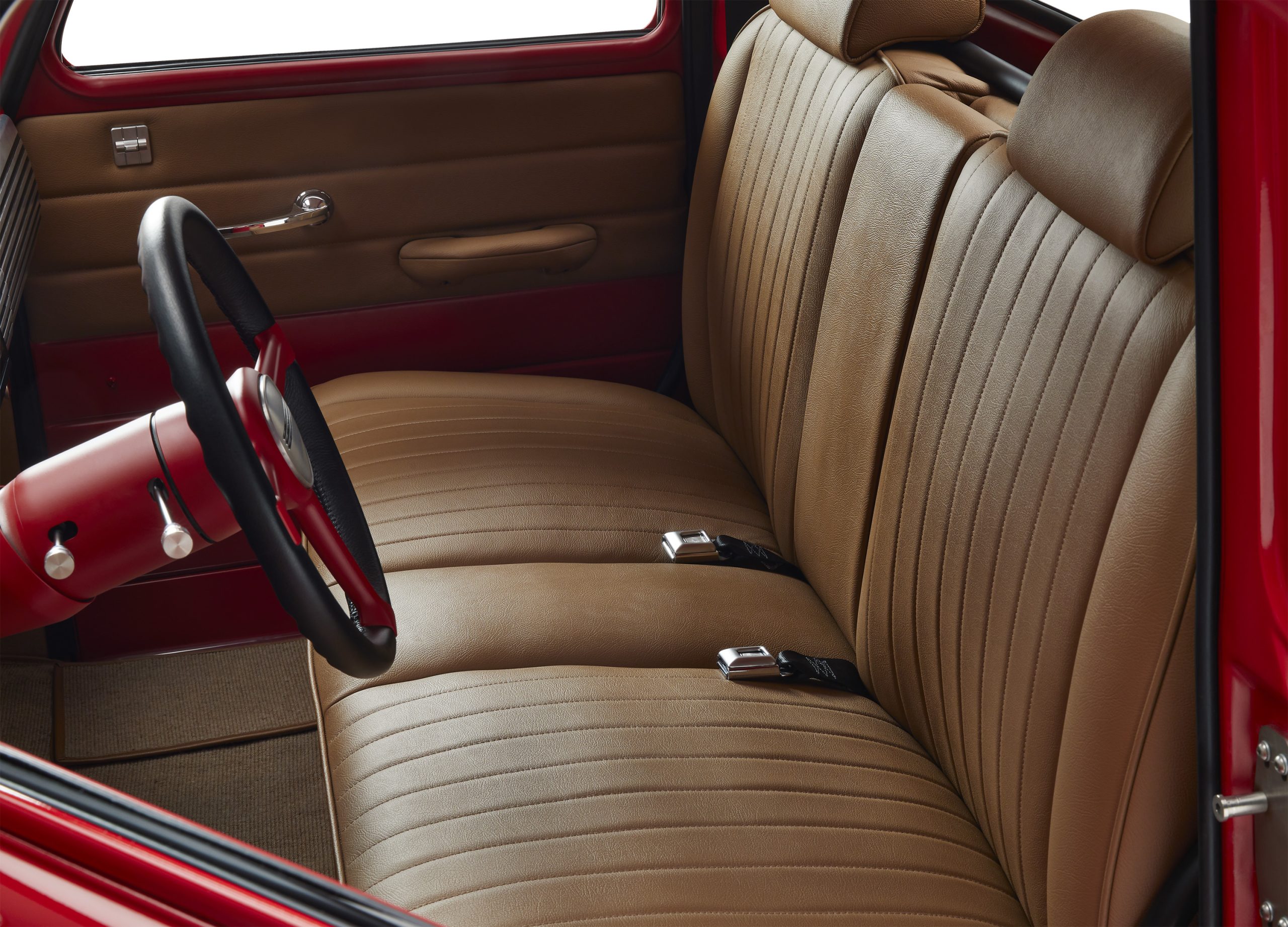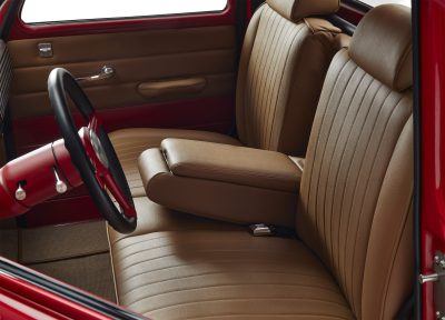 The classic Chevrolet 3100s were utilitarian vehicles designed to work. The Kindred 3100 preserves that aura, but layers in contemporary amenities that offer comfort and convenience that the original designers could never have envisioned. Inside the heated and air-conditioned cab, occupants will find retractable three-point seat belts, a heated leather bench seat with headrests, and a center armrest with cupholders. When not in use, the armrest can be stowed to make the center seating position available for an additional passenger.