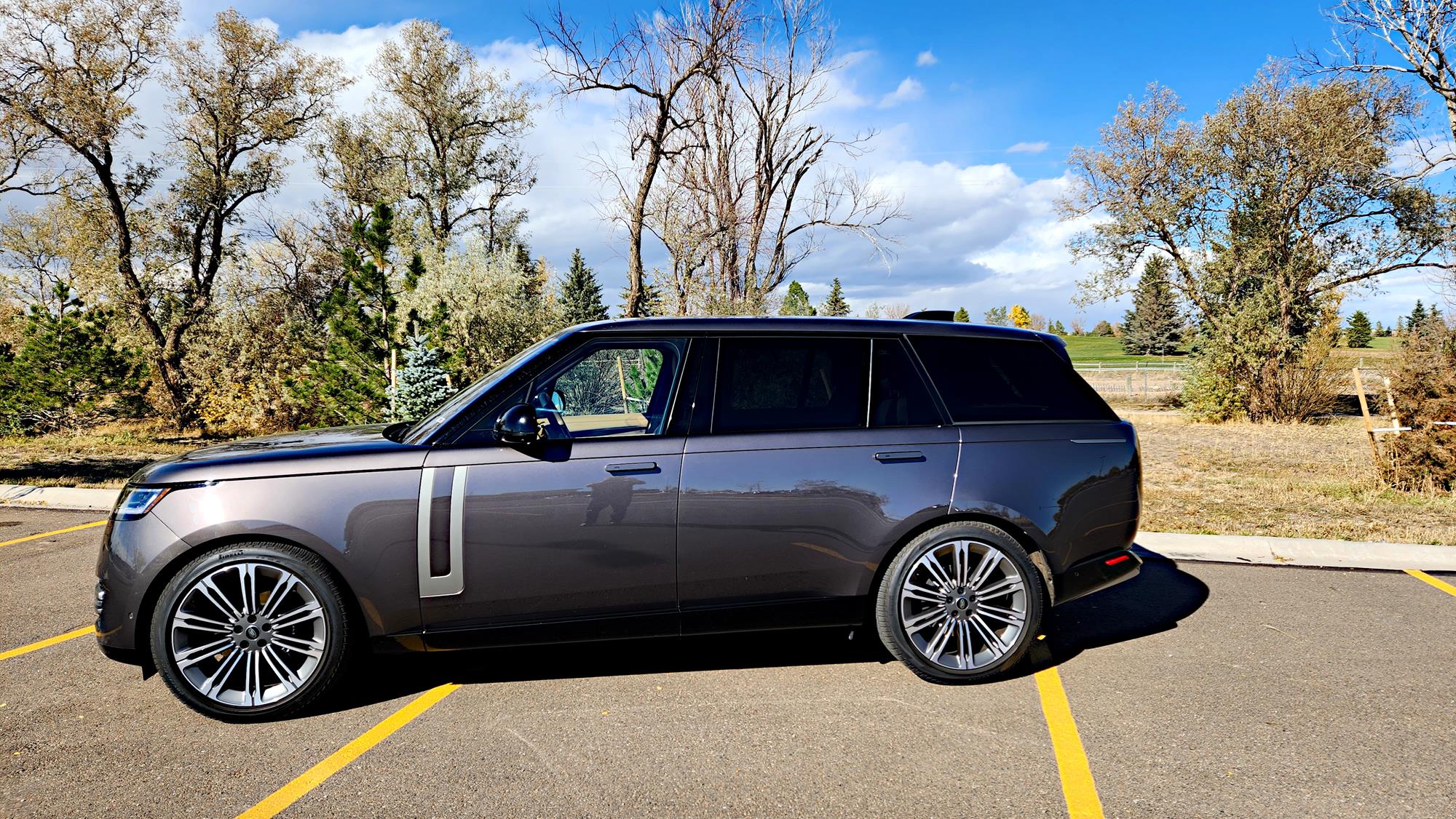 The new fifth-generation 2022 Range Rover comes in three trim levels: SE, Autobiography, and First Edition. Of these, only the SE cannot be had in a five-seat configuration with the slightly shorter body style. We drove the First Edition with its three-row setup and the larger of the two powertrain options. Those include the P400 model (SE-only) with a 3.0-liter V6 that outputs 395 horsepower and 406 pound-feet of torque and the P530 (optional on SE, standard on others) with a 4.4-liter V8 that puts out 523 horsepower and 553 pound-feet. An eight-speed automatic and all-wheel drive are standard with either engine.