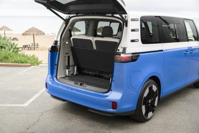 Outside, the ID. Buzz retains its traditionally boxy shape with short overhangs, giving it maximum utility on a minimal footprint. It is 192.4 inches in length, nearly 10 inches longer than the two-row Buzz; all that additional length comes from a 127.5-inch wheelbase, versus 117.6 inches for the two-row. It is 77.9 inches wide and 74.6 inches tall, making it roughly as wide as an Atlas, but five inches taller. Given that the original Bus was about as long as a 2019 Beetle and slightly narrower, this is a sizable increase. The coefficient of drag is just 0.29—very good for a vehicle of this shape.