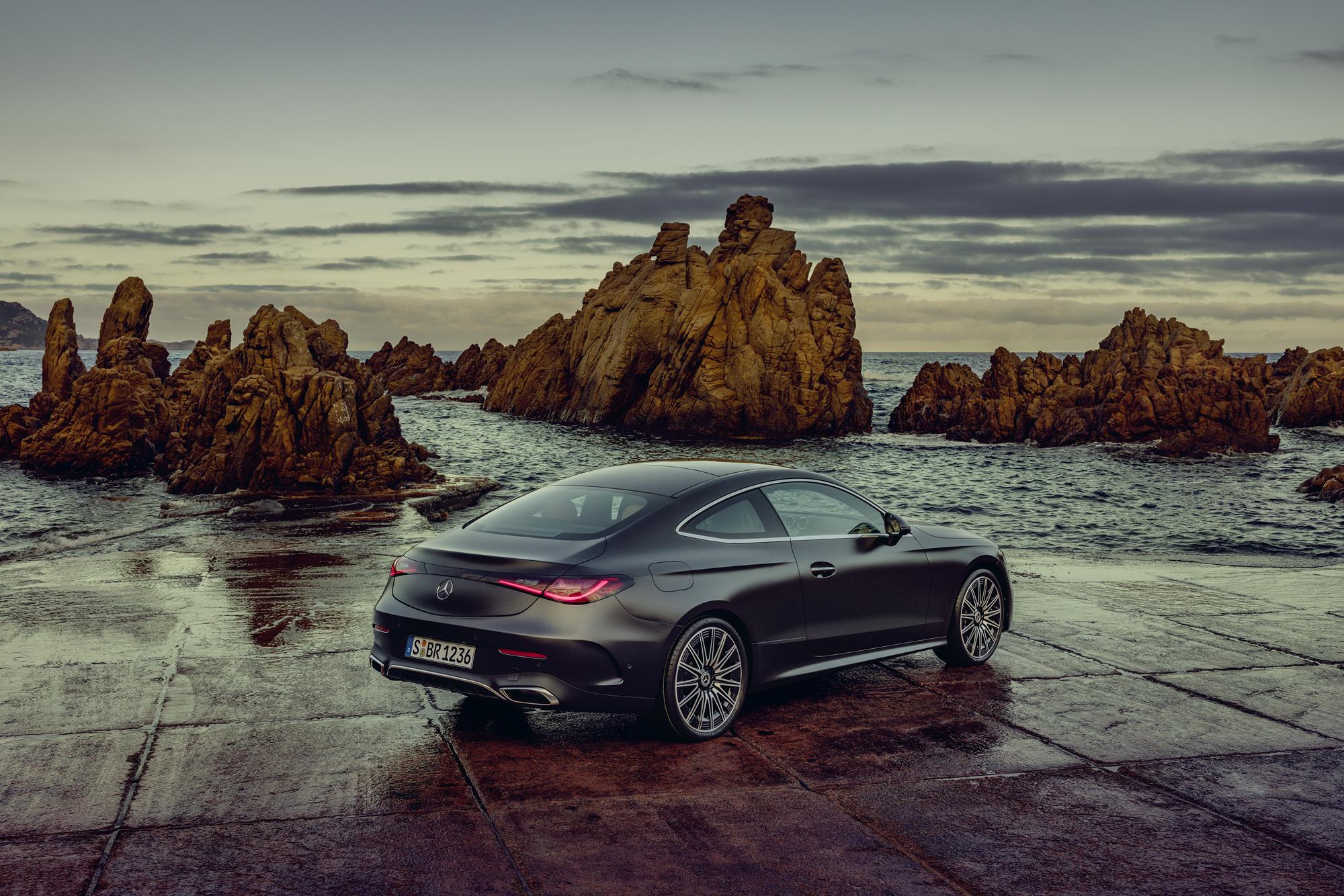 Iconic design: The striking exterior design features a long wheelbase, well-positioned and strongly inclined A-pillar, a short front overhang and a slightly longer rear overhang, as well as pronounced shoulders and large wheel arches. The new CLE Coupe combines these sporty, elegant proportions with the modern design language of Mercedes-Benz. True to the Mercedes-Benz design philosophy of Sensual Purity, the result is a powerful, dynamic design that embodies an emotional statement from every perspective.