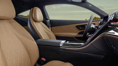 Sporty luxury in a class of its own, focused fully on the driver: this is the concept for the interior design of the new CLE Coupe. The interior features a free-standing 12.3-inch fully digital driver display and an 11.9-inch central display. The portrait oriented central display rises seamlessly from the center console and is slightly angled towards the driver by six degrees. Together with the vertical format, this creates a visual dynamic and lightness that underlines the driver-focus of the CLE Coupe.