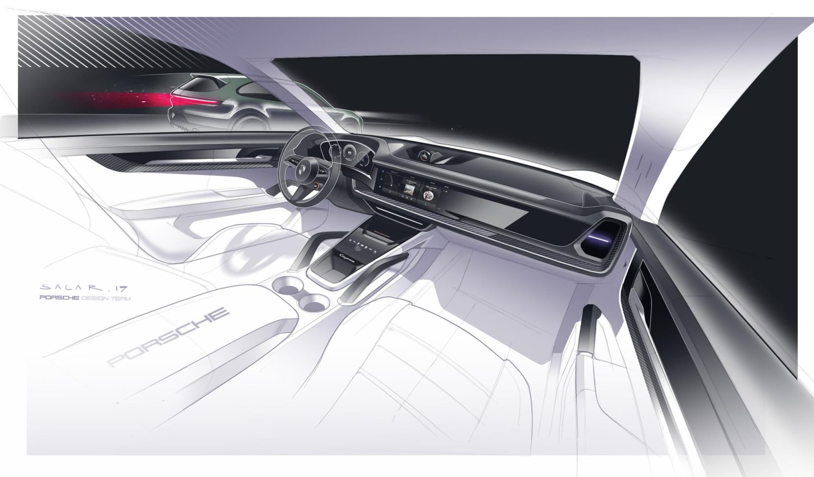 The deluxe cockpit takes elements of the Taycan electric sports car and includes a curved and free-standing 12.6-inch digital instrument cluster with variable display options, a redesigned center console and the latest-generation steering wheel – matching the wheel found in the 911. The gear selector for the automatic transmission is now located to the right of the steering wheel. This creates space for a large air conditioning controller in a sophisticated black panel design on the center console. Passengers can experience a new level of interaction with the vehicle and the driver via the optional passenger display. Optimized connectivity functions round off the new interior concept.