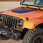 The Jeep Wrangler MOJO (the “OJ” in the name stands for “Orange Jeep”) is geared for the off-road enthusiast who seeks an even tougher vehicle with the functionality to tackle the most extreme trails. A Jeep Performance Parts 2-inch lift provides the clearance to traverse obstacles, with locking Dana 44 front and rear axles and a 4:1 Rock-Trac transfer case adding to Wrangler MOJO’s rock-climbing capabilities. Wrangler MOJO’s crawl ratio is 59:1. The vehicle’s 3.6-liter V-6 engine is augmented with a cold air intake and low restriction exhaust system.