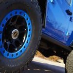 The Mopar Blue exterior is linked in appearance to the prototype eight-lug beadlock wheels by the Mopar Blue color on the beadlock ring. Wrangler Maximum Performance rides on 37-inch BFGoodrich Mud Terrain tires, with the sturdy hardtop covering full steel doors. The rear of the vehicle receives a prototype tire carrier and a 37-inch spare tire cover featuring the Jeep Performance Parts logo. Wrangler Maximum Performance also sports the five Moab “Badge of Honor” badges.