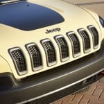 Inside the Cherokee Adventurer, black Katzkin leather seats, with perforated inserts, draw even more attention with maize-embroidered Jeep logos and maize stitching on the leather-wrapped steering wheel, arm rest and shift boot. The HVAC bezels, instrument panel, steering wheel and door switch bezels are upgraded with tan inserts to match the exterior color. The Jeep Cargo Management System is displayed with a Trailhawk bag, and is joined by a location-appropriate prototype Moab off-road bag. Bright door sill guards with the Cherokee logo, all-weather mats and a cargo tray complete the interior Mopar accessories.