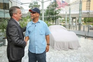 George Talley is reunited with his 1979 Chevrolet Corvette Tuesday, July 1, 2014 at the General Motors World Headquarters – 33 years after it was stolen on Jefferson Avenue, just three miles away – in Detroit, Michigan. Talley received a call from AAA informing him his car turned up in Hattesburg, Mississipi. GM Executive Vice President Mark Reuss heard the story on the news and had the car shipped back to the Renaissance Center for its return to Talley. (Photo by John F. Martin for General Motors)