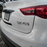 2015 Infiniti QX70 - detail 2 - AOA1200pxIn sport driving, the 2015 Infiniti QX70 is superbly ready. That tight turning and stiff suspension do an excellent job of conveying confidence to the driver as the QX70 powers down the straight or sprints around the corner. Being a crossover, of course, the QX70 is somewhat top heavy, but handles itself well when the driver learns its limits.