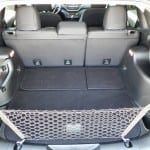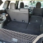 Cargo space in the 2015 Cherokee is good, though nowhere near best-in-class. At 24.6 cubic feet, it falls behind some competitors, but is still ample for most uses. With the rear split-fold seats down, the cargo space in the Cherokee grows to almost 55 cubic feet. Our test model included optional netting, some well-positioned tie-down points, and a nifty adjustable side rail for hooking and hanging things.