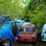 Tom Cotter, the author of the book, details the trio’s drive through their fourteen-day adventure. The plan is to hit three states over fourteen days and find as many old “barn find” style cars as they can. They count only cars made over 30 years ago, with some rare exceptions, and count them only if they are in “barn find” (i.e. “needs work”) condition. In all, over their two week trip, they find over 1,000 cars lying along the back roads, under trees, hidden in sheds and barns, and even in a run down warehouse. Photography by Michael Alan Ross showcases their discoveries.