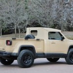 Exterior features, such as Jeep Performance Parts off-road rock rails, a winch mounted into the front and rear bumpers, Dana 60 front and rear axles and a 4-inch lift kit with Jeep Performance Parts/Fox 2.0 Remote Reservoir shocks, give the Crew Chief 715 increased capability. The “Tactical Green” color scheme runs from the custom modified M715-inspired front-end to the tailgate. The Crew Chief 715 features a military themed 5-foot cargo bed.