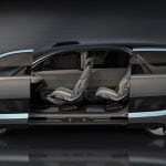 Featuring a mono-volume form that “shrink wraps” the battery-electric vehicle (BEV) powertrain and interior packaging, the Portal’s exterior design is anchored by illuminated, portal-shaped side openings with articulating front and rear doors for easy loading and unloading of people and cargo.