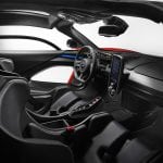 Driver controls have been deliberately kept to a minimum to reduce ‘cockpit clutter’ and the three-spoke steering wheel is free of buttons and switches, creating a pure focus on sensory feedback. All the information the driver needs comes from the high-definition McLaren Folding Driver Display and central infotainment screen. And while McLaren designers stopped short of removing the second seat altogether, there is no contingency for excess baggage; storage space is restricted to a chamber behind the seats integral to the Monocage III with just enough room for two helmets and race suits.