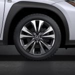 Among new 17- and 18-inch aluminum wheel designs created expressly for the UX, the five-spoke 17-inch wheels feature a world-first aerodynamic design. Computer simulations and wind tunnel testing yielded a profile shape for the wheel’s spokes that increases the airflow to cool the disc brakes, without compromising the vehicle’s coefficient of drag (Cd).
