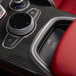 At the forefront of the refined interior is the new center console, which enhances the brand experience at nearly every touchpoint with an updated design featuring a machined-knurled aluminum-look rotary dial, upgraded knob materials and increased storage capacity. A new Italian flag badge at the base of the shifter signifies the country from which these vehicles were born, designed and crafted. Larger cup holders in the Giulia plus a new phone storage area with available wireless charging, round out the enhanced environment.