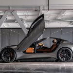 SC2 embodies Karma’s distinct design identity in its stance and surface. A bespoke Vapor Gray hand-painted body draws inspiration from the brand’s sleek, technology-focused future, while optimized aerodynamics leads the exterior design. Generous length from front axle to windscreen remains a distinct Karma design characteristic, while patented articulating hinge winged doors gently rising upward and forward to reveal a fiber optic headliner and stunning silhouette. Inside SC2, an I-shaped 120kWh battery is housed in the center tunnel beneath the dashboard and seats.