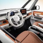 In Europe, the base interior trim for the ID. Buzz and ID. Buzz Cargo that goes with all exterior colors is called ‘Soul’. Four ‘Mistral’ interior trim options—available exclusively for the ID. Buzz five-seater—feature the two-tone finishes found on the exterior. ‘Candy White’ is used in for the instrument panel, the door trim around the inserts, the seats’ outer panels and backs, and optionally even the steering wheel, while ‘X-Blue’, ‘Orange’, ‘Yellow’, and ‘Green’ are can be found in the dashboard and upper section of the door inserts, as well as the seat inner panels.