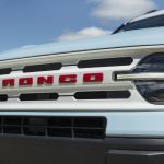 Heritage Limited Edition models add metal “Bronco” script front fender badging and larger 29-inch all-terrain off-road tires with more aggressive, deeper treads that stretch on to the sidewalls for improved off-road traction. Heritage Limited Edition models also upgrade to leather-trimmed seats and include Oxford White door inserts and unique center console badging.