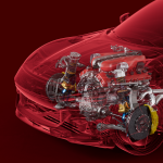 The Purosangue (Italian for “purebread”) features a V12 engine specially adapted to the car and an interesting drivetrain layout. The gearbox is just ahead of the rear axle while the power transfer unit (PTU) for the front axle is mounted ahead of the engine. This balances the vehicle’s weight for a 49:51 front:rear distribution.