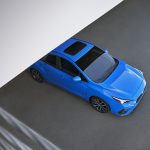 The RS trim offers unique exterior trim elements including RS badging on the front doors and rear hatch; 18-inch alloy wheels in dark gray finish; black finish on the front grille, side spoilers, side mirrors, upgraded LED headlights, and LED fog lights.