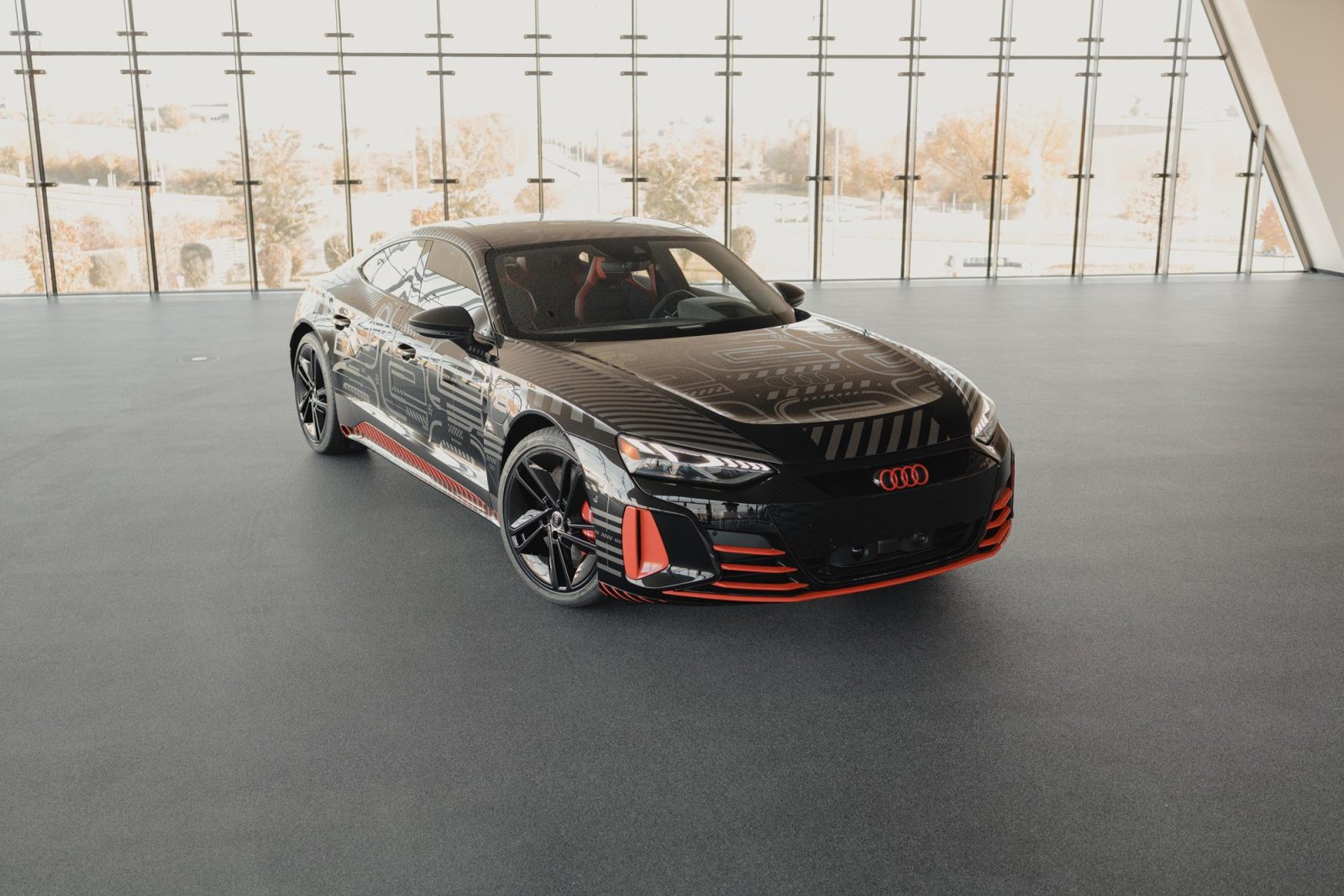 The RS e-tron GT project_513/2 is the first Audi to offer a camouflage graphics-skinned and wrapped exterior from the factory. Camouflage graphics are often used by Audi for initial testing, and are designed to create confusion for onlookers that may be looking to capture the latest glimpse into automotive exterior design and technology before it is made public.