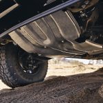 - Tough, stamped steel underbody skid plates for the front of the vehicle, steering rack, exhaust and transfer case