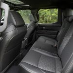 Debuting exclusively on the new TRD Pro is a segment-first IsoDynamic Performance Seat that helps provide a smooth, confidence-inspiring ride for those in the driver and front passenger seats. The goal of this patent-pending feature is to stabilize the driver’s field of vision to improve focus, comfort, and reduce fatigue while on rugged trails. The IsoDynamic Performance Seat uses an air-over-oil shock absorber system allowing for vertical and lateral seat movement simultaneously to dampen body movement and stabilize the head and neck to keep alignment with the spine. This dampening effect is tunable based on body mass and occupant preference and can be bypassed, if desired, via levers on the seatbacks.