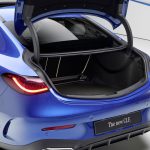 With its dimensional concept – in particular the 1-inch longer wheelbase – the CLE Coupe offers significantly more space than the C-Class Coupe. Rear passengers benefit from 0.4 inches of additional headroom, 0.75 inches of additional shoulder and elbow room and 2.8 inches of additional knee room. The trunk offers 2.1 cu-ft of additional space and can easily accommodate three golf bags.