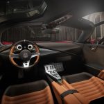The aluminum H-frame and carbon-fiber monocoque promise rigidity and lightness. To ensure high qualities of rigidity and safety, a roof structure has been engineered in carbon fiber and aluminum, which supports the hinged butterfly doors. The window frames also are made of carbon fiber. Continuing with the lightweight theme, the rear window is made from polycarbonate.