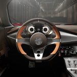 The profile is dynamic and slender, with butterfly doors that feature two large air inlets. The body is projected forward, with surfaces modeled according to Alfa Romeo’s formal expression. Corner openings of the doors and the large wraparound sunroof give the driver a unique, aircraft cockpit view. Opening the bonnet and doors enhances the car’s theatrical design.