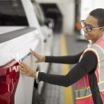 New tooling supports Ford’s drive for high quality. The Rouge Electric Vehicle Center now utilizes equipment to automatically measure and validate exterior body fit for margin and flushness precision. It’s the first time such tools have been deployed in Ford’s North American plants. A third station was added to validate wheel alignment and headlamp aim for driver assist technology.