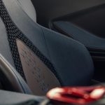 The interior is made almost entirely of sustainable materials, all made in Italy. While the high-end Merino wool (from a B Certified Italian company) dresses the dashboard, seats and door panels, the colored thread is made of recycled material regenerated nylon / recycled plastic and many non-visible plastics, such as the foam of the sports seats, are made of 3D-printed recycled fibers. Even the extensively integrated carbon, such as in the center console and door panels, is made of regenerated carbon: a new, two-layer composite material.