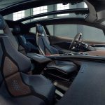 The interior’s pilot position is also defined by a slim and lightweight dashboard that uses iconic design elements such as the large Y-shape used for the center console bridge. With a high level of versatility for everyday use, combined with the performance and seat position of a super sports car, head of design Mitja Borkert created an unexpectedly-roomy interior using the design freedom given by the space of a fully-electric package.